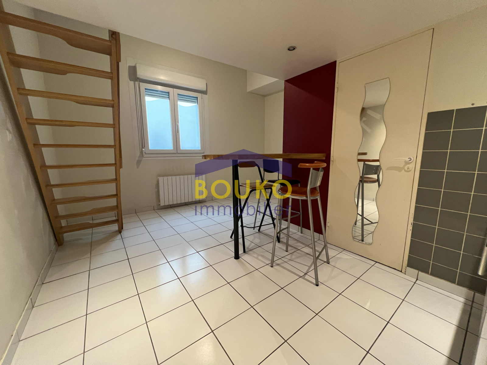 Nancy (54000)NANCY: Idéalement situé rue du Jolie Coeur à proximité d'un Parc, de la Pépinière et du centre ville, appartement de type T1 au RDC d'une petite résidence bien tenue comprenant 1 entrée, 1 cuisine US équipée, 1 comptoir bar, une pièce principale avec mezzanine e (coin nuit), 1 grand placard, 1 SDE avec douche et WC.