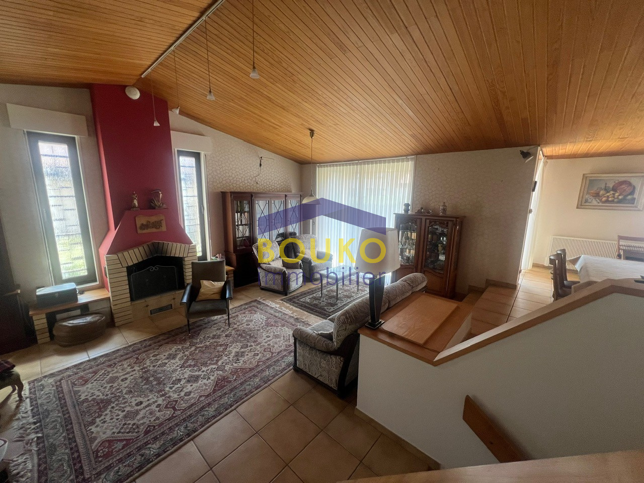 Ce pavillon comprend 1 entrée, 1 grand et lumineux salon séjour avec cheminée, 1 salle à manger, 1 cuisine tout équipée, 3 chambres, 1 SDB avec baignoire, 1 SDE avec douche, 2 WC, 1 coin bureau avec un magnifique bow-window, 1 veranda, 1 garage 2VL, 1 atelier, 1 cave, 1 cellier, 1 buanderie, 1 terrasse, et jardin arboré et clos.